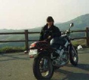 | 火口への道は細く、灰で真っ黒だった。火口では硫黄の匂いが立ち込め白い噴煙がもうもうと上がっていた。これもまた良いものだ。 またもやお土産屋で足を止め、あとは草千里を目指して一気に下る。ところがやっと見つけた草千里展望台には、緑輝く草原はどこにもなく、ただ茶色に焼けた広い土地だけが視界に広がるのみ。このときの空しさは何とも言い様がない。 しかしこの晩はペンションということでかなりリッチな気分にひたれた。くるみのマスターもバイク好きで感じのいい方。ちょっぴりお酒を飲んで皆で語り合った。うーん今日は最高! |